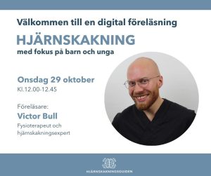 Du är välkommen att medverka vid Hjärnskakningsguidens digitala föreläsning där fysioterapeuten och hjärnskakningsexperten Victor Bull föreläser om hjärnskakningar, med fokus på barn och ungdomar.