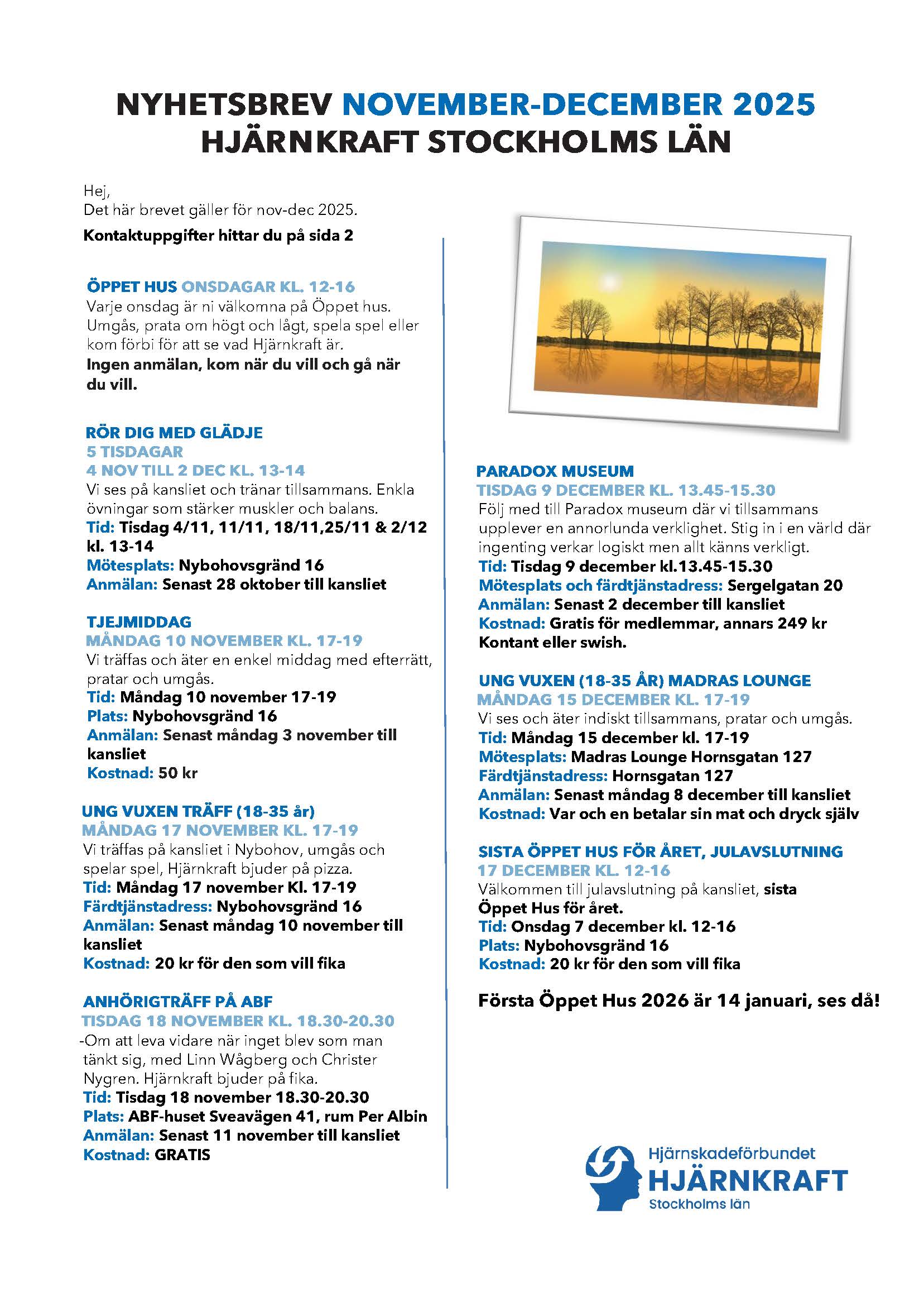 Här finns vårt nyhetsbrev för november och december. Klicka här så kan du läsa nyhetsbrevet.